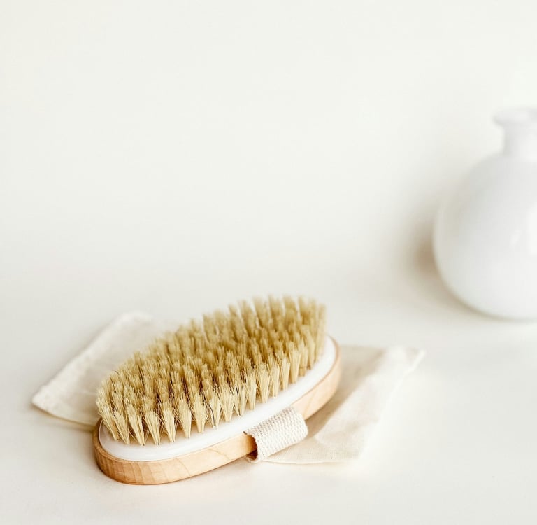 Drainage lymphatique : Le brossage à sec peut favoriser le drainage lymphatique, ce qui aide à éliminer les toxines du corps et peut réduire la rétention d'eau.